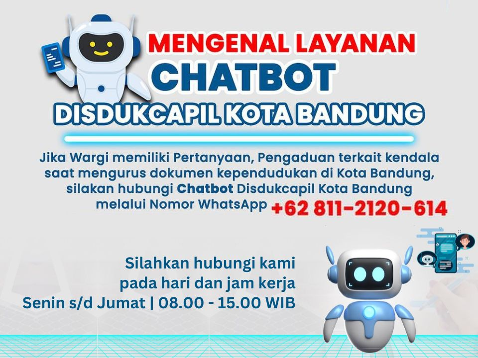 Jika Wargi memiliki pertanyaan, pengaduan terkait kendala saat mengurus dokumen kependudukan di Kota sumedang, silakan hubungi Chatbot Disdukcapil Kota sumedang melalui Nomor Whatsapp +62 811-2120-614 Silahkan Hubungi Kami selama hari dan Jam kerja (Senin-Jumat 08.00 - 15.00 WIB)